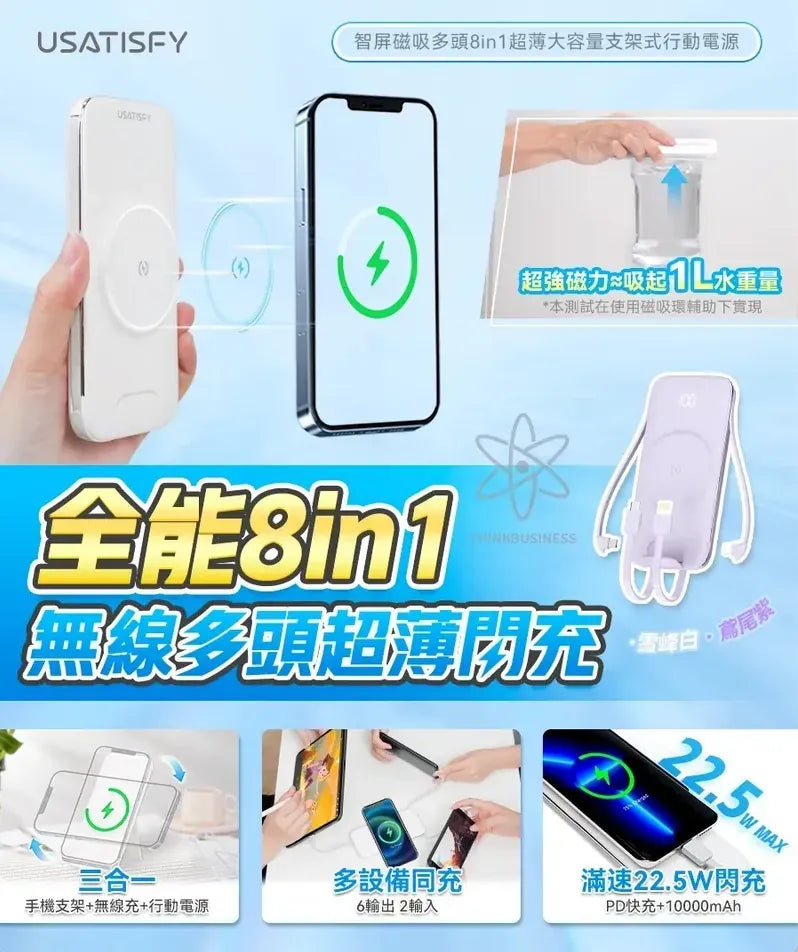 ✈️可帶上機充電器USATISFY|8合1支架行動電源|10000mAh|多手多腳尿袋|超薄磁吸|充電器|一年保養