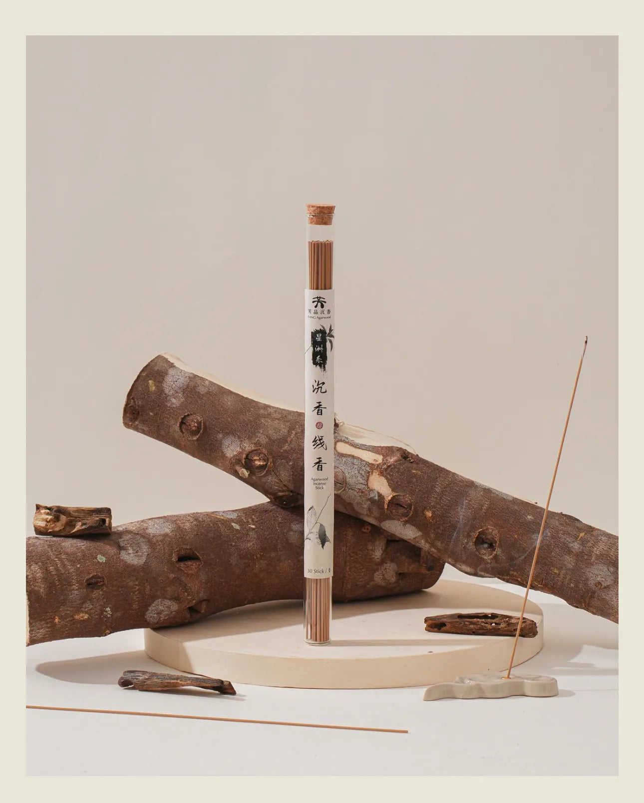 天然沉香粉混合植物黏合劑,燃燒時釋放醇厚木質香