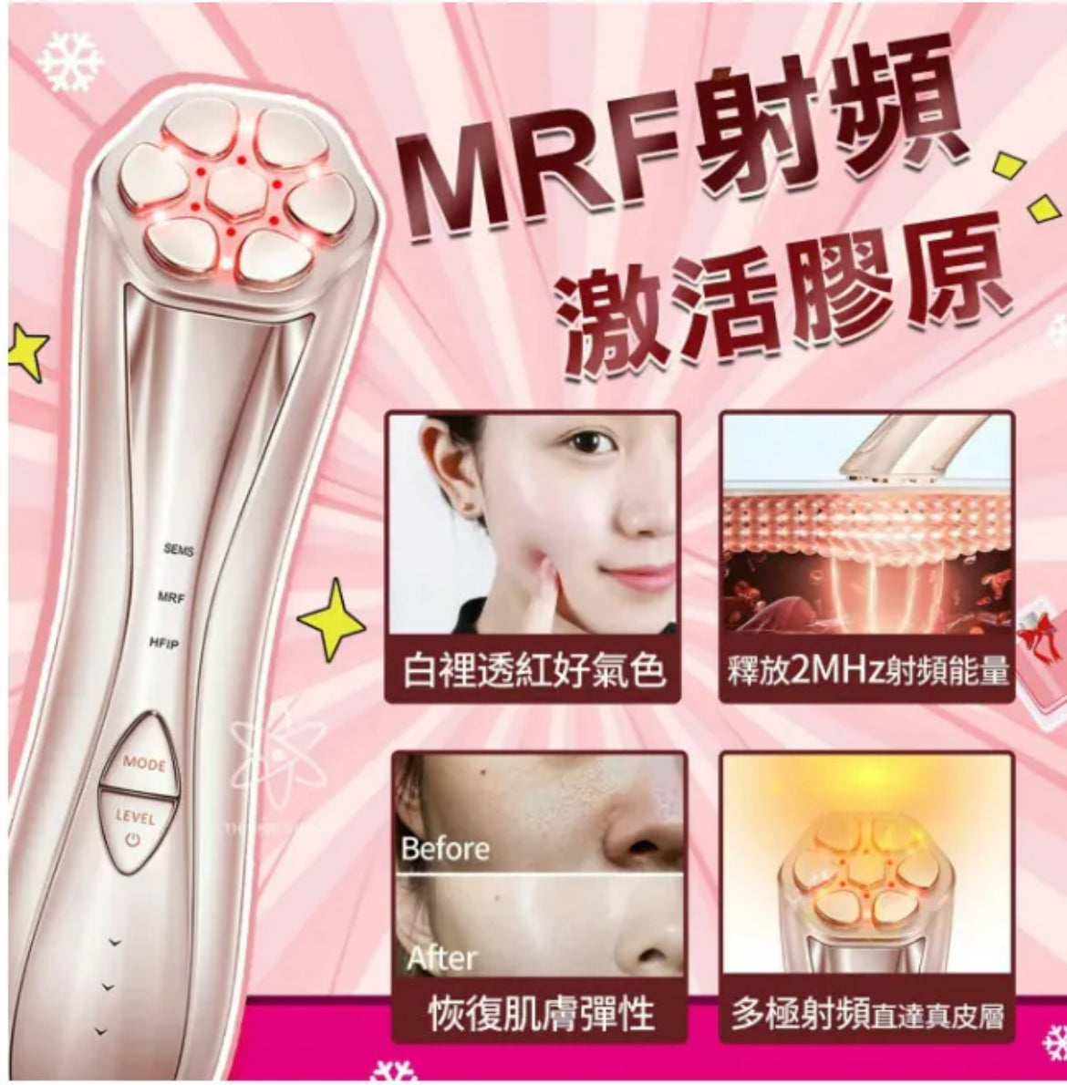 MRF射頻➕SEMS微電流➕HFIP復合電脈沖疊加活性射頻紅外光➕遠紅外雙重光學技術溫熱導入